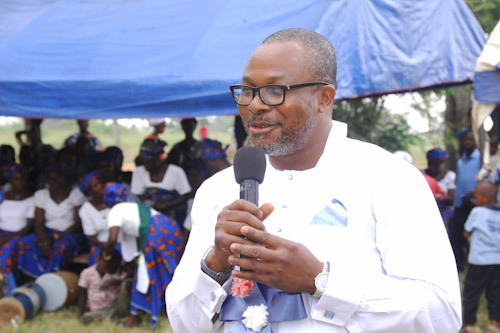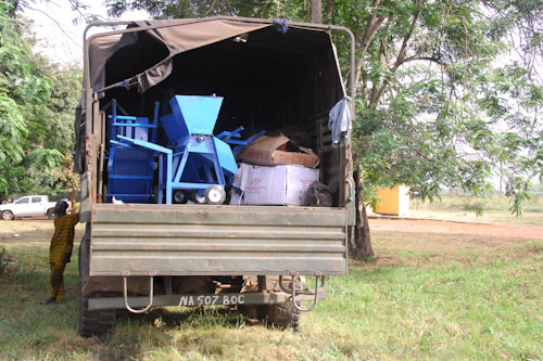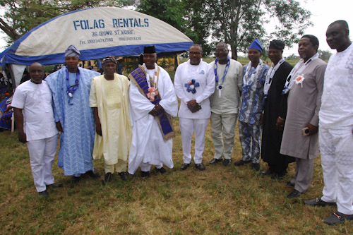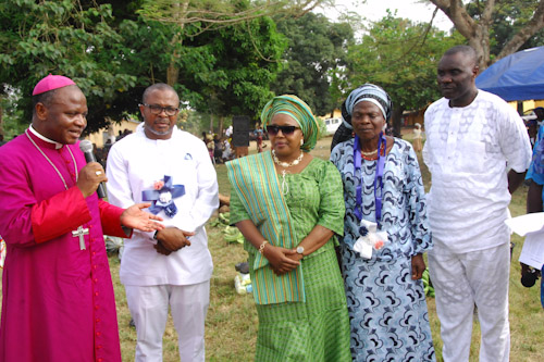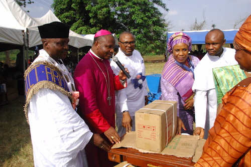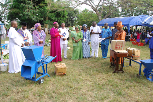 Symbolic presentation of the machines to the beneficiaries by the Bishop of Ondo Diocese, Most Rev. Jude Arogundade